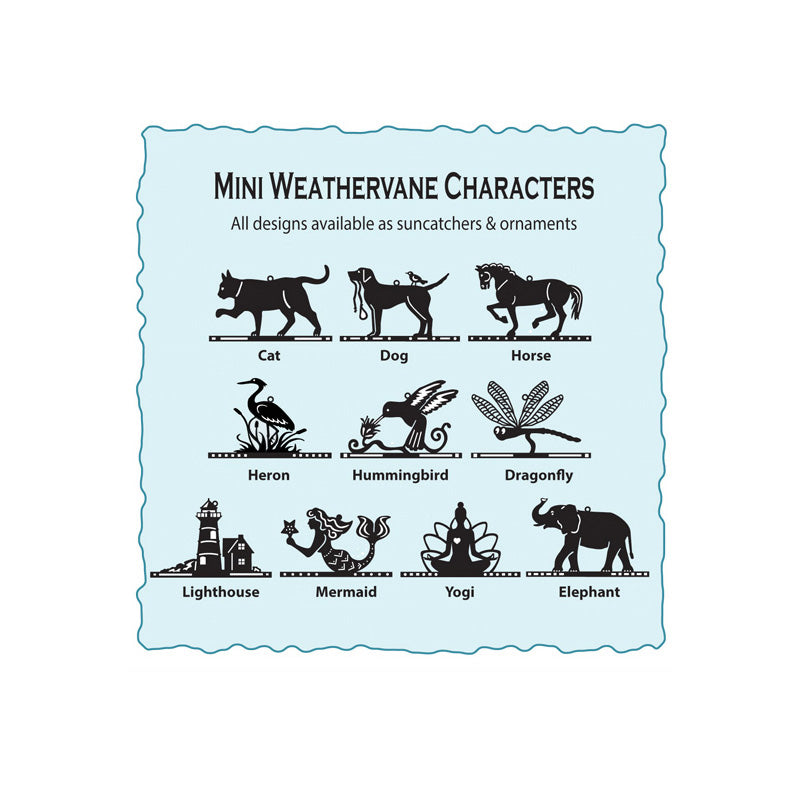 Which weathervane character speaks to you? Our silhouette roadmap makes finding your special design so easy. Each character is available as an Ornament or a Suncatcher.